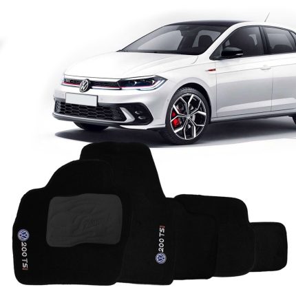 Jogo Tapete Polo 200 Tsi 2018 2019 2020 2021 2022 2023 2024 Carpete Automotivo 5 Peças Preto Bordado