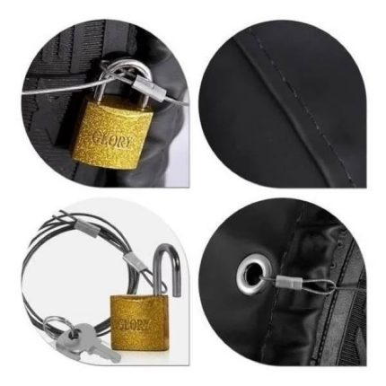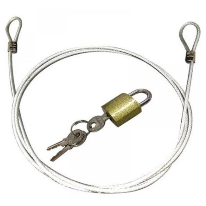 Para proteção contra furto, acompanha cabo de aço plastificado e cadeado com 2 chaves